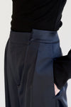 微光沢な目面のあるギャバリーツイル素材の特性を生かし、ゆったりとしたワイドシルエットに。ウエスト部分が特徴的で、シルエットがコンパクトなトップスからオーバーサイズまで、幅広いワードローブに寄り添う一着です。
