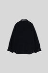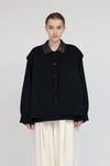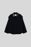 フロントに垂れるようにデザインされたストールが象徴的なリバー仕立てのシャツジャケット。