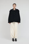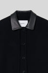 滑らかな肌触りの二重織りビーバー素材をベースに、襟部分は本革をアクセントにデザインされています。マットな質感のウールと、光沢感のある本革が織りなす異素材のバランスや、シャツの様な感覚で羽織れるシルエットがスタイリングにアクセントをもたらします。