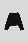 内側にはボレロの様に袖が独立してデザインされており、さらにケープで覆う様に設計された、軽い着心地と美しく表情のあるシルエット。