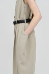 リサイクル原料を使用し、自然な清涼感のある表情と心地よい着心地を備えたジャンプスーツ。