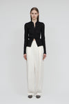 The clear coloration and a subtly placed small collar add just the right accent to the minimal design. Simply layering it tightens your look and gives a refined, sophisticated impression.