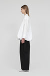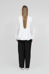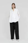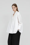 A balloon-silhouette cotton blouse made from two layers of plain-weave fabric using ultra-fine cotton yarns.