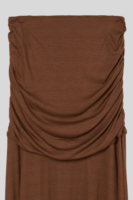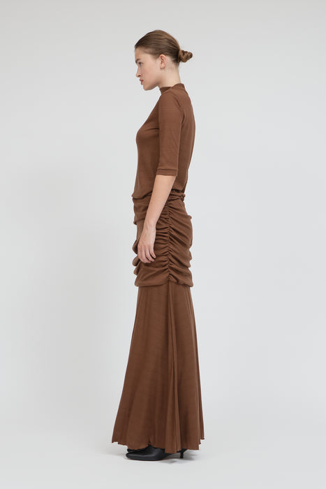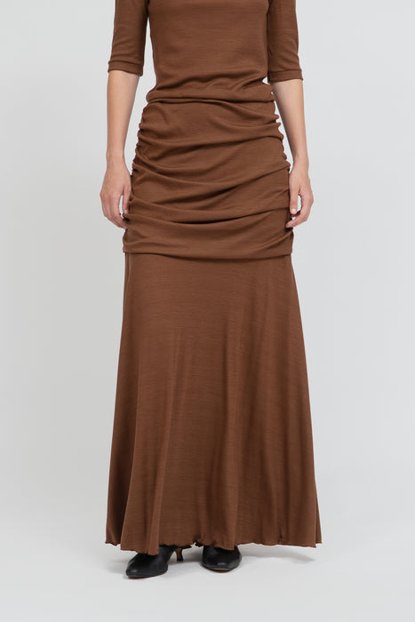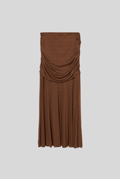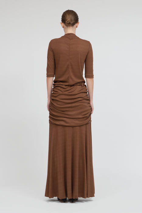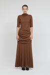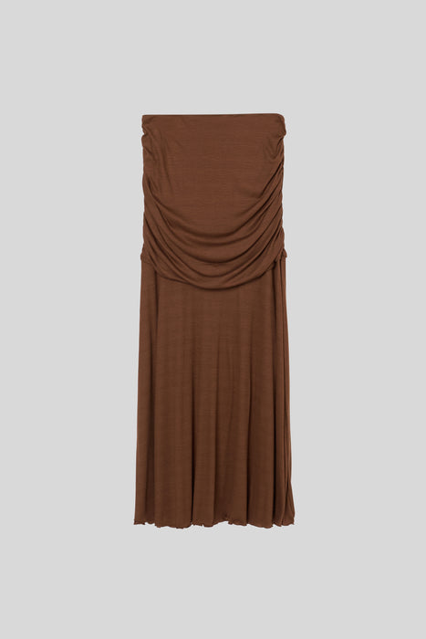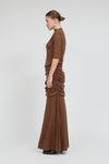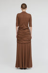 The area from the waist to the hips is designed with a double layer, and the gentle drape prevents it from clinging to the hip line, further giving a graceful impression.