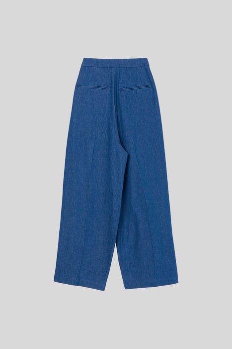 While featuring a beautiful wide silhouette,The silhouette is tapered toward the hem, making it easy to achieve a balanced look,You can feel the meticulous attention to detail with the press line processing added to the center.