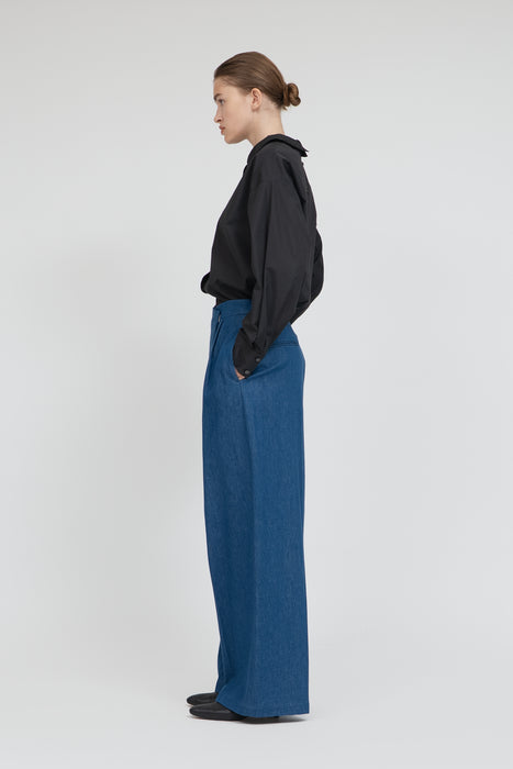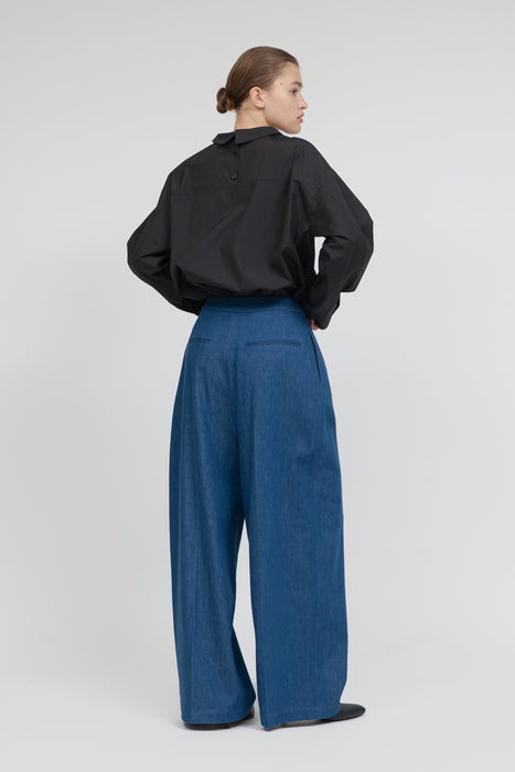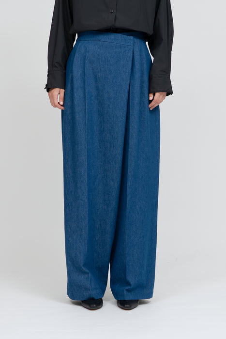 Using the classic IIROT cross pants pattern, this new denim is crafted from 11oz slub yarn denim fabric. It features a one-wash finish for a comfortable, non-stiff feel and a calm, uniform indigo tone.