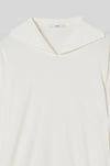 The voluminous, three-dimensional sleeves are a design inspired by the process of a bud gradually swelling before blooming. A piece that maintains the distinctive comfort of hole-garment construction, finished lightly for a pleasant feel against the skin.