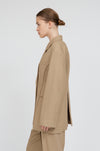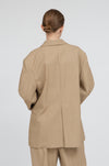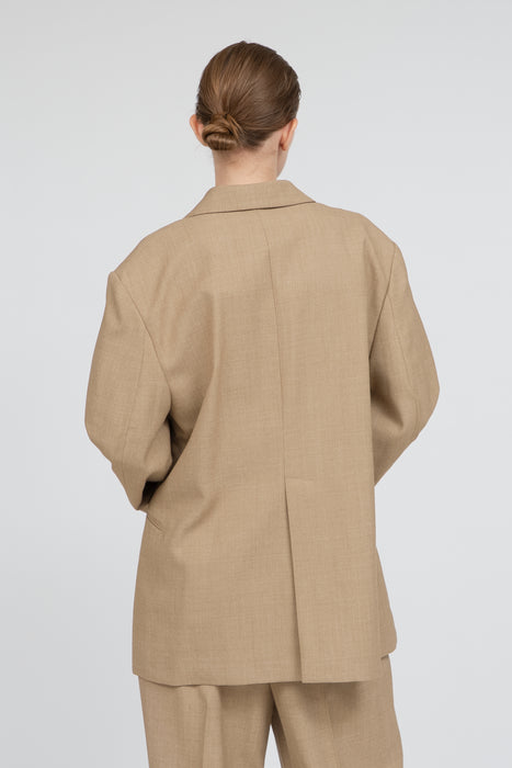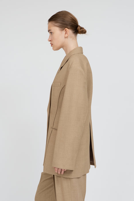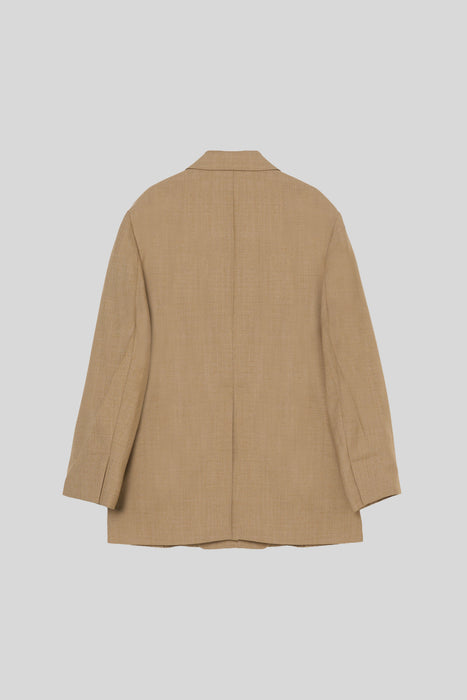 A tailored jacket made from wool blend yarn, specially processed to create a dry texture.
