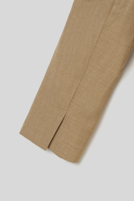 The shoulder features a set-in design with a slightly relaxed width, and the waistline is cinched with tucks, showcasing the beautiful silhouette crafted with the tailoring factory's expertise.