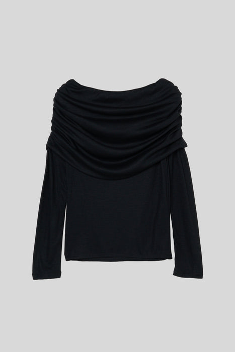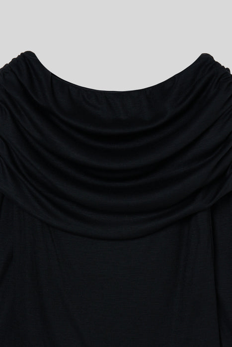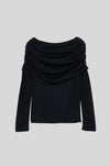 緩やかなドレープはデコルテラインを美しく魅せ、リラックスした着用感でありながらも上品な印象を与えてくれる一着。