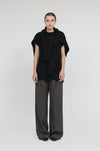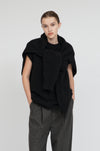 ノースリーブに大判のマント様なデザインをドッキングした存在感のあるデザインは、リラックスムードを叶えエフォートレスな印象に。