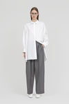折り紙から着想を得た構造的なシルエットが、平面と立体の美しいコントラストを生み出します。身体を通すことで立体感がより際立ち、軽やかでやわらかな着心地とともに自然なフォルムを形成。