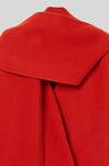 襟元に大判ストールのデザインが施された立体的な丸いフォルムのウールコート。