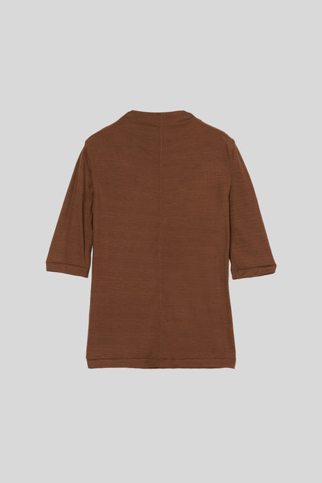 フィット感がありコンパクトな身頃は上半身を華奢に見せ、やや首元に高さを持たせたボトルネックがエッジを効かせ、エレガントな装いへと導きます。