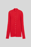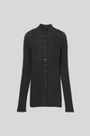 モヘアシルクの糸を使用したリブ編みのニットカーディガン。
