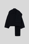 エクストラファインメリノビーバーの二重織の生地を使用したリバー仕立てで、軽い羽織心地が特徴的です。ふんわりと纏うことができる程よい厚みは、柔らかさと暖かさに包み込まれる着心地となっています。ショート丈のためボトムを選ばずスタイリングに取り入れることができるコートです。コンパクトながらデザイン性を兼ね備え、どんな日も手に取りたくなる”軽さ”と上品な装いも魅力的な一着です。