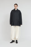 2/90番手の超細番手糸を二重織で織り上げた、メルトン生地仕立てのスタンドコート。程よくしなやかな肉感と上質で品のある光沢が特徴的な素材を使用しています。