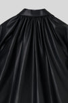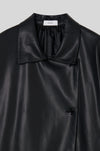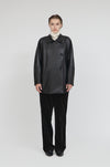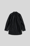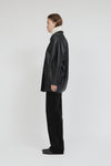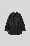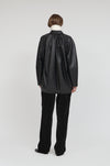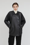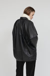 スムースな質感のシンセンティックレザーを使用したコクーン型のジャケット。