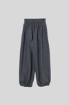 程良い素材の張り感とパターン設計をマッチさせて生まれた立体的なシルエットを叶えます。ゴム仕様のウエストや、ゆとりのあるデザインによってリラックスムードも備えつつ、端正なフォーマルスタイルにも馴染む一着です。
