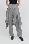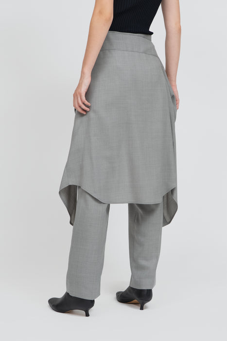 滑らかで光沢のあるビエラ素材を採用したレイヤードトラウザー。