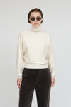 無駄を削ぎ落としたシンプルなクロップド丈のタートルネックは、着丈やサイジングを計算し尽くした拘りの設計です。